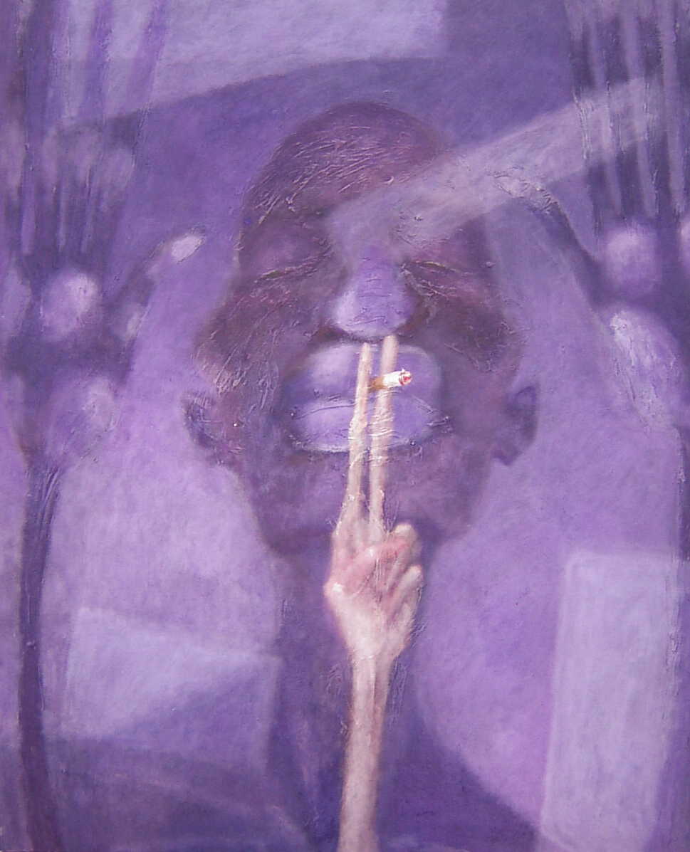 那是一种通过绘画作品的视觉,音乐产生的听觉,夹杂着烟草味道的嗅觉,展览专属紫色鸡尾酒的味觉,人与人的触觉以及每个人产生的不同的更深层次的多种感触。